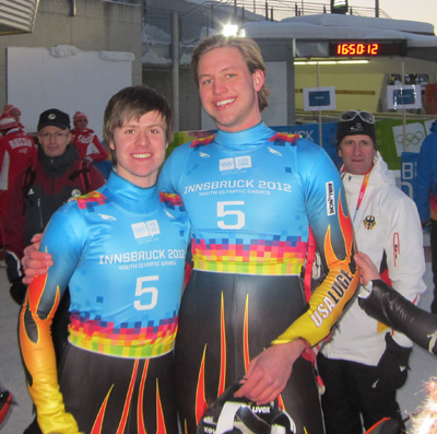 IGLS, Austria – The luge events at the inaugural winter Youth Olympic Games (YOG) yodeled a familiar tune Sunday, January 15, in the Tyrolean Alps as German men, led by Christian Paffe and Toni Graefe, tallied gold and bronze medals, respectively, on the Olympia track outside Innsbruck, Austria.
